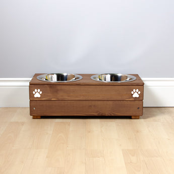 Double Personalised Raised Dog Bowl Stand 17cm High - Royal Oak